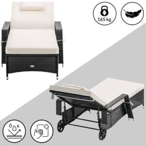 - WETTERFEST UND PFLEGELEICHT - Das hochwertige Polyrattan der Balkonliege ist wetterfest und UV-beständig. Die Oberfläche lässt sich mühelos mit einem feuchten Tuch reinigen, sodass die Liege immer gepflegt ist. Ein echter Blickfang für Garten, Balkon oder Terrasse.