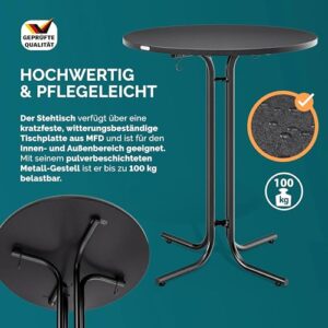 - VIELSEITIG & STILVOLL: Das schlichte Design der Stehtische fügt sich nahtlos in jede Umgebung ein. Der Hochtisch passt zu allen Anlässen und lässt sich stilvoll mit Stehtisch-Hussen kombinieren. Die runde Tischplatte bietet ausreichend Platz für Getränke, Snacks und Dekoration.