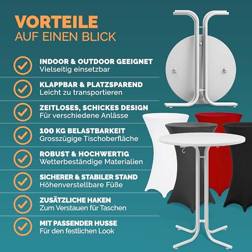 - PFLEGELEICHT & HOCHWERTIG - Der Stehtisch und die Husse sind leicht zu reinigen, was das Set perfekt für private Feiern, Hochzeiten und viele andere Events macht. Die Tischplatte ist UV-beständig und hält auch langer Sonneneinstrahlung stand, die Stehtischhusse bei 30° waschbar.