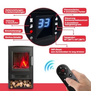 - 🔥【Fernbedienung und Timer-Funktion】Sie können den Kamin einfach über die mitgelieferte Fernbedienung, WiFi oder direkt auf Ihrem Gerät steuern, 8 Stunden Timer-Funktion, um den Kamin automatisch ein- oder auszuschalten.