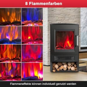 - 🔥【LED Flame Design】Mit drei Panoramascheiben und einem dekorativen Fach für echte Holzscheite. Der Elektrokamin ist mit einem digitalen LCD-Display mit realistischem LED-Flammendesign, 8 Flammenfarben und 5 Stufen der Flammenhelligkeit ausgestattet. Die Flammeneffekte können unabhängig voneinander verwendet werden.