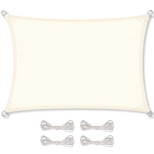 - das Segel Set besteht aus: 1x Sonnensegel wind- und wasserdurchlässig (HDPE), Farbe: creme-weiß, rechteckig 3x6m, 4x Befestigungsseile (je ca. 1,5m), reißfestes High Density Polyethylen Gewebe (HDPE), sorgt für ca 85% Abschattung, Gewicht von ca 185-190g/qm