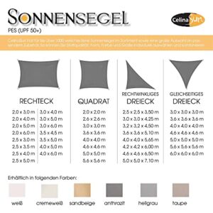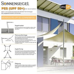 - CelinaSun Premium Schattensegel lassen sich einfach und schnell montieren, die konkave Form überträgt die Spannung nach außen. Zusätzliche Stabilität erhält das Segel durch den rundum eingenähten Gurt