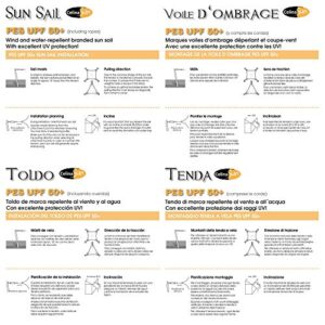 - Segeltuch aus 100% reiß- und wetterfestem Polyestergewebe (PES), wasserabweisende Polyurethan Beschichtung an der Unterseite, Materialgewicht ca. 160g/qm. UPF 50+, höchster textiler Sonnenschutzfaktor