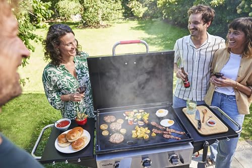- Vielfältiges Grillgut dank Grillplatte aus einem Guss: Mit der 48 x 68 cm großen Grillplatte aus porzellanbeschichtetem und somit rostresistentem Gusseisen, die die Hitze gleichmäßig verteilt, sind dem Kocherlebnis im Freien keine Grenzen gesetzt