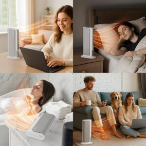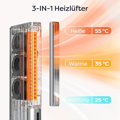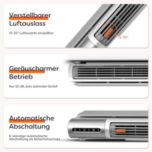 - Leiser Betrieb & Flexibilität: Heizlüfter energiesparend leise ultraleise bei nur 50dB. Ideal als ruhiger Schlafbegleiter am Bett oder Schreibtisch. Der 15-35° Schwenkbereich lenkt die Wärme/Kühle gezielt und erweitert den persönlichen Wohlfühlbereich.