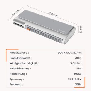 - Sofortige Wärme & Energieeffizienz: PTC-Schnellheiztechnik heizt sofort auf,warten wie bei alten Elektroheizung! Dank nur 400W Leistung sparen Sie bis zu 40% Strom vs. 2000W-Heizgeräte. Ideal als energiesparender elektrischer Heizlüfter für Dauerbetrieb.