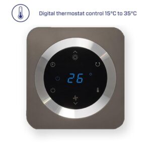 - Digitale LED-Anzeige Heizlüfter CA-904C ein/aus - Einstellung der gewünschten Temperatur zwischen 15 °C und 35 °C - Heizen mit Gebläseposition stark oder schwach - Kühlen mit Gebläseposition stark oder schwach - Ein-/Ausschalten des Drehwinkels von 80° - Timer mit Einstellung von bis zu 12 Stunden - Temperaturanzeige in °C.