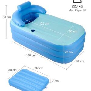 - 【Groß & Kräftig】Diese aufblasbare PVC-Badewanne ist groß genug für Personen, die fast 185cm groß sind oder ca. 100kg wiegen.