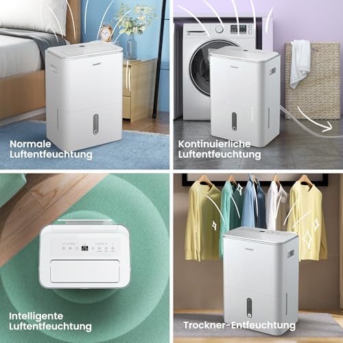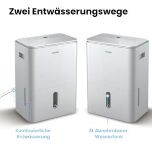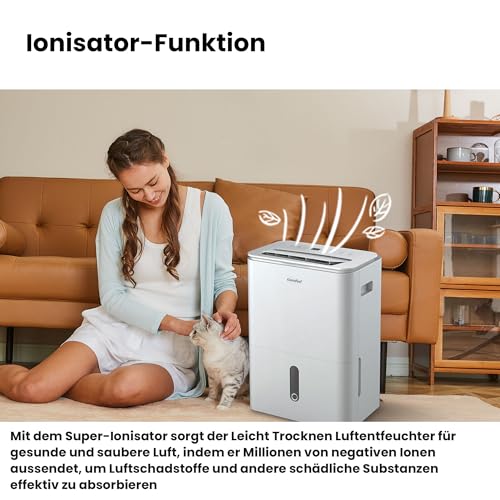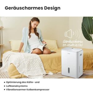 - Hocheffiziente Entfeuchtung: Entfeuchtungskapazität bis zu 20 Liter pro 24 Stunden. Geeignet für Räume von ca. 80 Kubikmetern (40 Quadratmetern). Mit einem herausnehmbaren 3-Liter-Wassertank mit Wasserstandsanzeige.