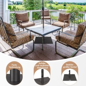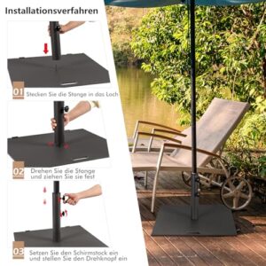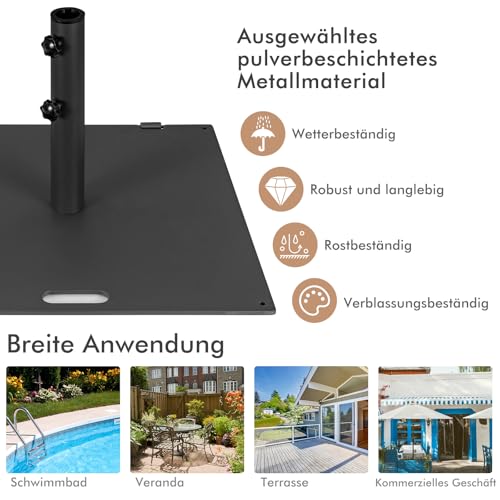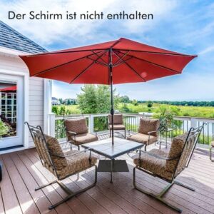 - 【Rostfreies Metallmaterial】Der aus pulverbeschichtetem Metallmaterial gefertigte 21,5 kg schwere Schirmständer zeichnet sich nicht nur durch hervorragende Wetterbeständigkeit für eine lange Haltbarkeit aus, sondern ist auch beständig gegen Rost, Abblättern oder Absplittern und lässt sich nicht verformen, um eine gute Form zu behalten, um Ihren Schirm zu stützen.