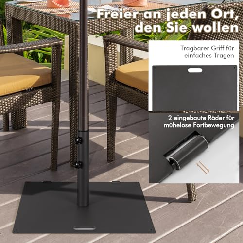 - 【Einfache Bewegung】Auf einer Seite befinden sich 2 integrierte Räder, mit denen Sie die Schirmstange mühelos anheben und nach vorne bewegen können, ohne dass Ihr Boden durch diese Bewegung zerkratzt wird. Auf der anderen Seite befindet sich außerdem ein tragbarer Griff zum einfachen Tragen und Transportieren.