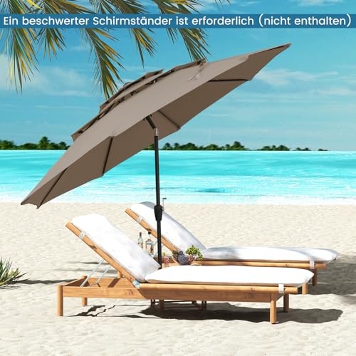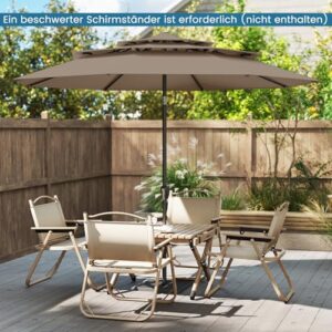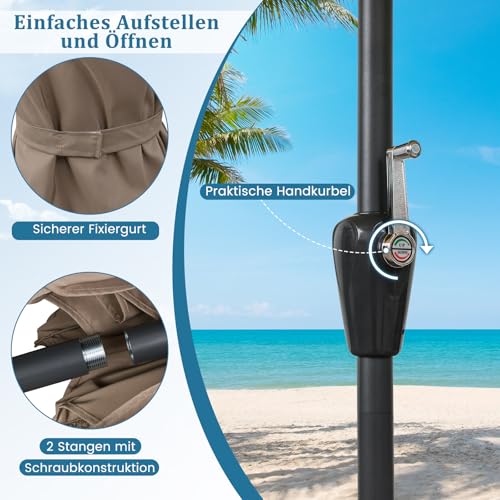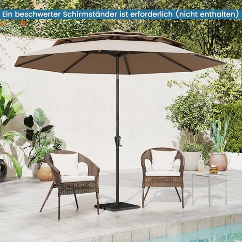 - 【Vielseitige Anwendung】Dieser Marktschirm erfordert eine beschwerte Basis (nicht enthalten) oder muss in einem Gartentisch (nicht enthalten) befestigt werden, um stabil zu stehen. Der Pfostendurchmesser von 37 mm eignet sich für die meisten Aufstellungen. Ideal für verschiedene private und kommerzielle Anwendungen wie Außenbereiche, Cafés, Gärten oder Poolanlagen.