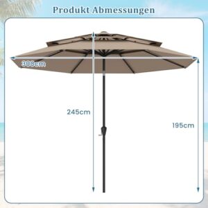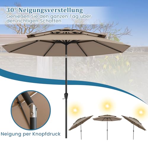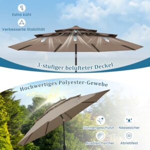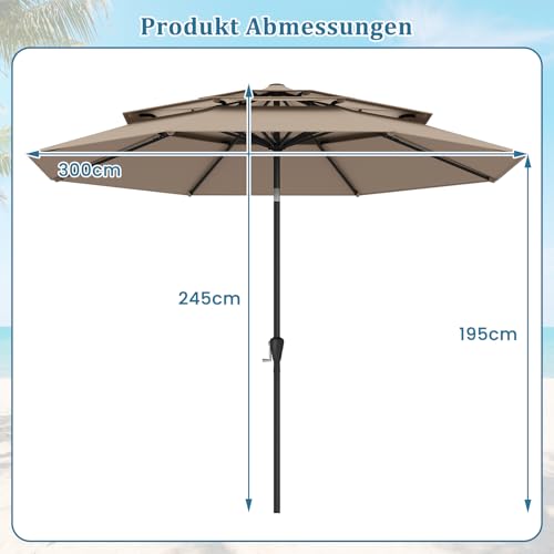 - 【Erhöhte Stabilität und Windbeständigkeit】Dieser 300 cm große Patio-Sonnenschirm verfügt über einen 3-stöckigen belüfteten Oberteil und 8 schwere Metallstreben, die nicht nur für eine optimale Belüftung sorgen, sondern auch den Winddruck reduzieren, um die Form und Integrität des Schirms an windigen Tagen zu erhalten.