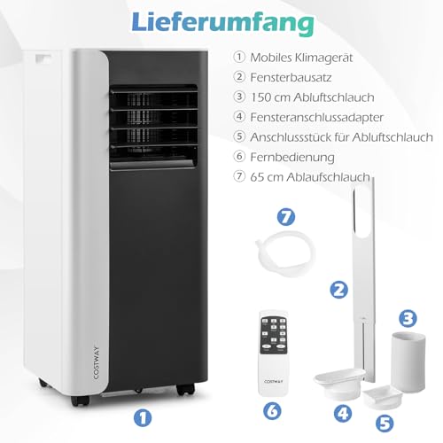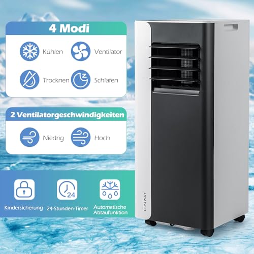 COSTWAY 7000BTU mobile Klimaanlage, 3-in-1 Kühlgerät mit Ventilator & Luftentfeuchter für Räume bis zu 28㎡, Klimagerät mit Abluftschlauch, Schlafmodus, 24H Timer, Fernbedienung