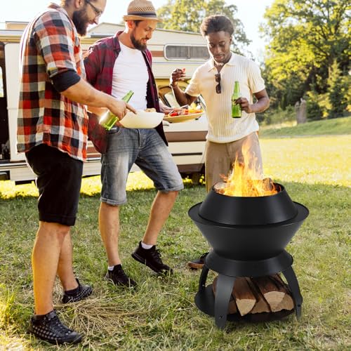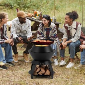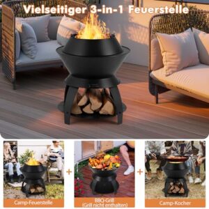 - 【Vielseitige 3-in-1 Feuerstelle】Ausgestattet mit einem Topfhalter oben eignet sich die Feuerschale perfekt als Kochstelle, um Ihren Kochbedarf zu decken. Wenn der Topfhalter entfernt ist, können Sie sie als Lagerfeuer oder BBQ-Grill (Grill nicht enthalten) für mehr Wärme und Freude verwenden.