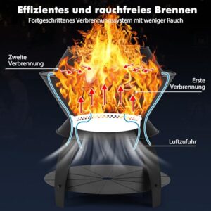 - 【Effizientes & rauchfreies Brennen】Diese Feuerstelle verwendet ein fortschrittliches Verbrennungssystem mit weniger Rauch. Das clevere Design ermöglicht eine zweistufige Verbrennung dank eines fortschrittlichen Luftstromsystems und der Sauerstoff-anreichernden Verbrennungstechnologie.