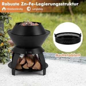 - 【Robuste Metallkonstruktion】Die gesamte Feuergrube ist aus einer robusten Zink-Eisen-Legierung gefertigt, die hitzebeständig ist und einer längeren Verbrennung standhält. 4 stabile Beine erhöhen die Stabilität und sorgen für unerschütterliche Standfestigkeit.