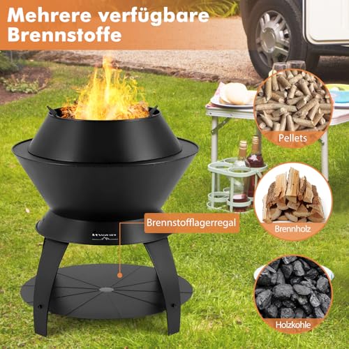 - 【Mehrere verfügbare Brennstoffe】Das Brennstoffregal bietet mehr Komfort für das Hinzufügen von Brennstoff. Die Feuerstelle ist für eine breite Palette von Brennstoffen geeignet, wie Pellet-Brennstoff, brennendes Holz und Holzkohle, können Sie frei nach Ihren Bedürfnissen wählen.