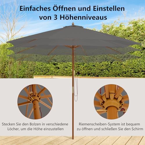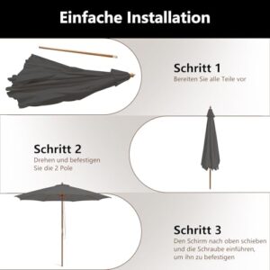 - 【Seilrollensystem und 3 Höhenstufen】Unser Sonnenschirm ist mit einem einfach zu bedienenden Seilrollensystem ausgestattet, das sich durch einfaches Anheben leicht öffnen lässt. Dazu gibt es einen Bolzen, der in 3 Löcher an der Stange eingeführt werden kann, um unterschiedliche Höhen einzustellen, die Ihren unterschiedlichen Bedürfnissen gerecht werden können. (Der Schirmständer ist nicht enthalten)