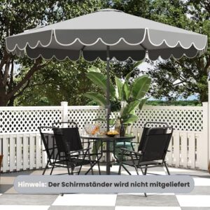 - 【Hochwertiges & zuverlässiges Material】Hergestellt aus einem hochwertigen Polyesterdach, ist der Terrassenschirm sonnenbeständig, farbecht, wasserabweisend und reißfest und bietet zuverlässigen Schutz vor den Elementen. Hinweis: Bei Unwetter bitte den Schirm schließen, um seine Lebensdauer zu verlängern.