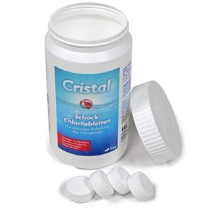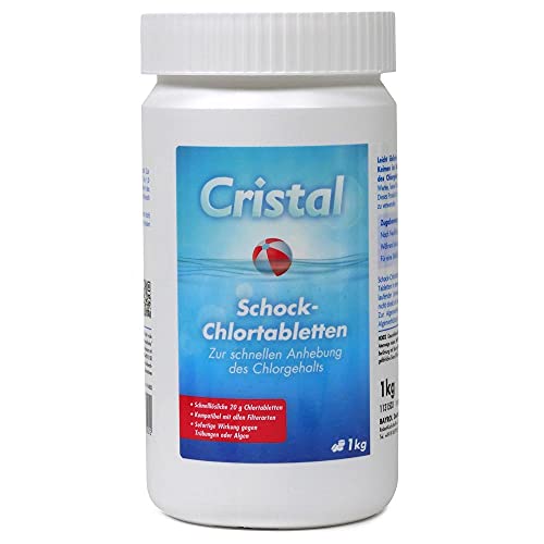 - SCHNELLLÖSLICH: 20 g Chlortabs von Cristal zur schnellen Anhebung des Chlorgehalts und somit auch zur Schock-/Stoßchlorung geeignet! Sofortige Wirkung gegen Trübungen oder Algen. Auch universell zur Dauerdosierung einsetzbar.