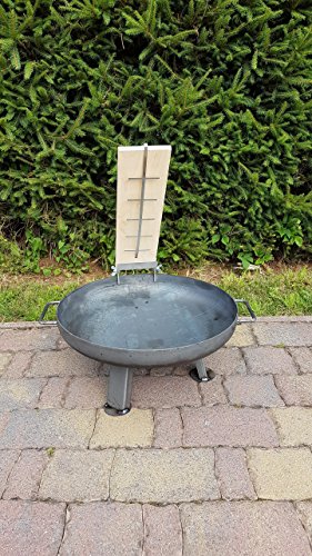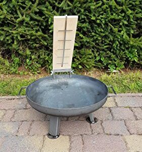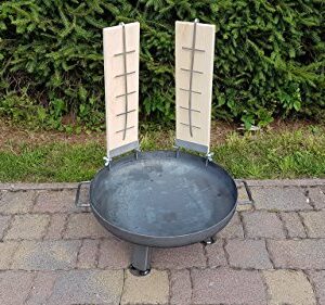 Czaja Feuerschale Ø 55 cm mit 2 er Set Flammlachsbrettern 2er Set Räucherbrett aus Buchenholz inkl. Edelstahlhalterungen
