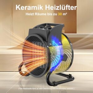 - Sofortige Wärme in 3 Sekunden:Die leistungsstarke 3000W PTC-Keramikheizung mit Lüfterblättern aus Legierung liefert schnelle Wärme bei geringem Stromverbrauch. Energieeffiziente Reichweite von 30 m² mit einem effektiven Luftstrom von 2.8 m/s