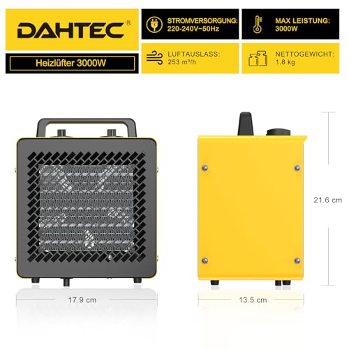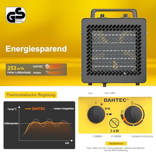 - Sicher & Zuverlässig:Industriequalität mit hitzebeständiger Pulverbeschichtung am Stahlgehäuse. Thermostat und Überhitzungsschutz für sichere Nutzung