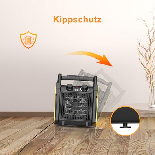 - Vielseitiger Einsatz:Der tragbare Heizer ist perfekt für kleine Räume wie Wohnungen, Büros, Werkstätten, Lager, Garagen, Baustellen, Gewächshäuser uvm