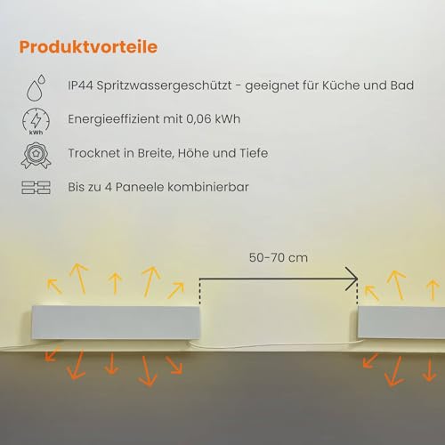 - LIEFERUMFANG: 1x Anti Schimmel Infrarotheizung, Wandhalterung und Standfüße