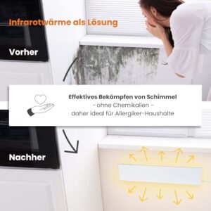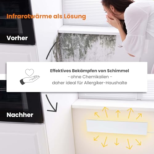 - ANWENDUNG: Anti Schimmel Heizung zur gezielten Wandtrocknung bei Feuchtigkeit. Schimmelentferner Wand ideal für Bad, Keller, Schlafzimmer, Außenwände und Raumecken zum Schimmel entfernen