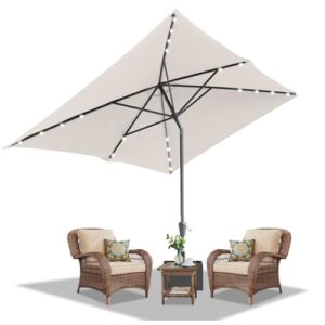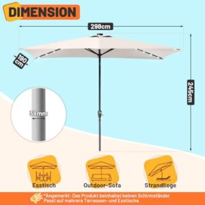 - 【IDEALER SCHATTENSPENDER】 Sonnenschirm Rechteckig 210 x 140cm für einen großflächigen Schatten. Das Schirmtuch besteht aus 180 g/m² Polyester und bietet einen UV-Schutz bis UPF 50+. Der Gartenschirm hält somit 98 % der UV-Strahlen ab, mit Dachfenster für Entlüftung
