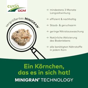- [MINIGRAN TECHNOLOGY] Diese einzigartige Technik bringt ein Mikrogranulat hervor, bei dem alle benötigten Nährstoffe in jedem Korn enthalten sind. Es weist eine feine Körnung auf, rieselt sehr gut in die Grasnarbe ein und ist staub- und geruchsarm.