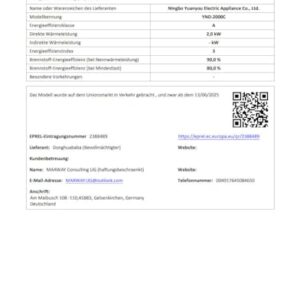Hersteller: NINGBO YUANYOU ELECTRIC APPLIANCE CO., LTD.