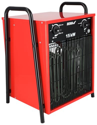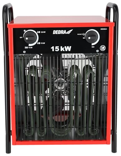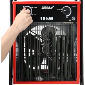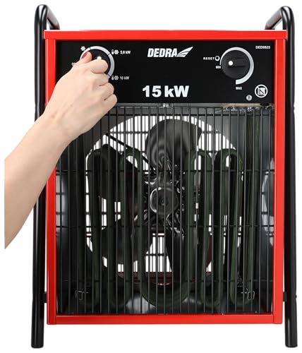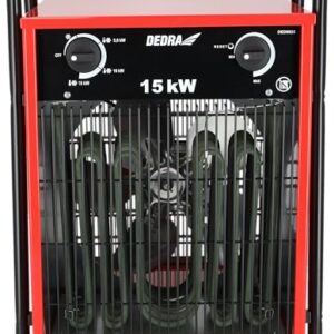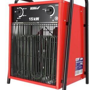 DEDRA Elektro-Lufterhitzer 15 kW, uadratisch, rot, nützlich in geschlossenen Räumen, Thermostat, einstellbare Temperaturregelung, drei Betriebsarten, Metallgehäuse