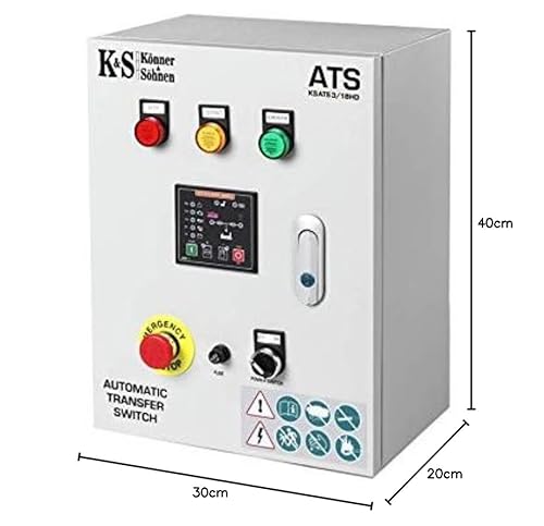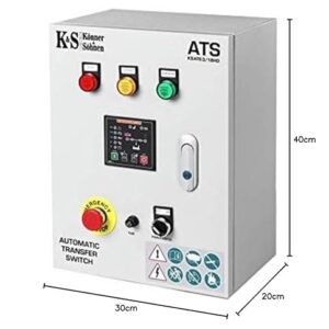 - Die ATS-Einheit verfügt über einen Controller, mit dem der automatische Start/Stopp des Generators bei Stromausfall und nach dessen Wiederherstellung, die Warmlaufzeit des Generators vor der Lastzuschaltung programmiert und erkannte Fehler signalisiert werden können.