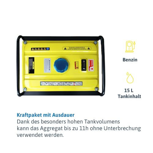 - Kraftpaket mit Ausdauer: Dank des besonders hohen Tankvolumens von 15L Fassungsvermögen, kann das Aggregat bis zu 11h ohne Unterbrechung verwendet werden. Maximale Laufzeit gepaart mit starker Leistung im schallgedämpften Gehäuse!