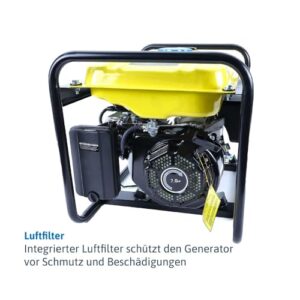 - Safety first: Der integrierte Luftfilter schützt das Aggregat vor Schmutz und Beschädigungen. Der Integrierte Ölalarm warnt bei zu niedrigem Ölstand. Feste Stahlriemen außen am Aggregat ermöglichen zudem einen einfachen und stabilen Transport.
