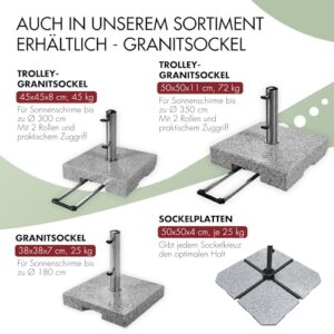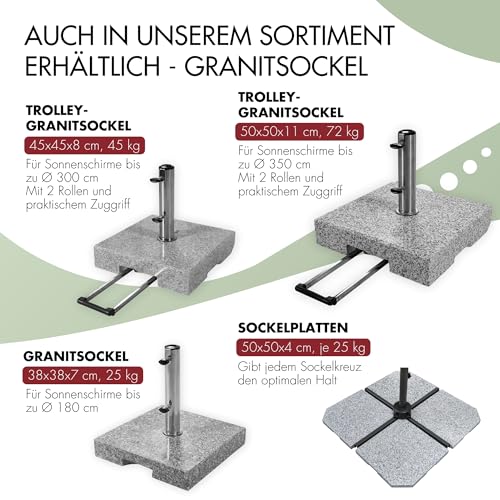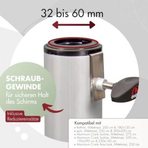 - KOMPATIBEL - Der Schirmständer ist geeignet für Schirme mit einem Rohrdurchmesser von 3,2 bis 6,0 cm. Er verfügt über Reduzierringe mit den Innendurchmessern: 5,2 / 4,8 / 3,8 cm