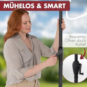 - BEQUEME NUTZUNG - Die Kurbelfunktion & die Knickvorrichtung ermöglichen Ihnen eine einfache Bedienung. Passen Sie sich den Schatten individuell an. Der Schirm ist nicht höhenverstellbar.
