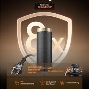 - 𝙐𝙣𝙚𝙧𝙨𝙘𝙝ü𝙩𝙩𝙚𝙧𝙡𝙞𝙘𝙝𝙚 𝙎𝙞𝙘𝙝𝙚𝙧𝙝𝙚𝙞𝙩: Dreo geht über Standards hinaus und bietet maximale Sicherheit bei jedem Heizvorgang. Ein innovativer Neigungssensor sorgt für verbesserte Genauigkeit und Zuverlässigkeit beim Kippschutz. Zudem besteht das Gerät aus V0-flammhemmenden Materialien, verfügt über Überhitzungsschutz und einen Sicherheitstecker.