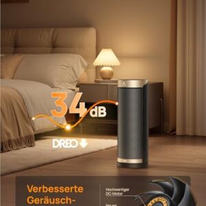- 𝘽𝙚𝙝𝙖𝙜𝙡𝙞𝙘𝙝𝙚 𝙍𝙪𝙝𝙚: Kein Entweder-oder zwischen Wärme und Stille – der Dreo Heizlüfter fürs Schlafzimmer arbeitet dank bürstenlosem DC-Motor mit reibungsloser Leistung und Flügelventilator-Design nahezu geräuschlos bei nur 34 dB.