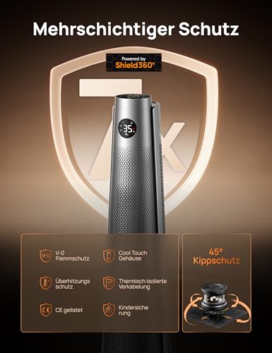 - 𝙍𝙪𝙣𝙙𝙪𝙢-𝙎𝙞𝙘𝙝𝙚𝙧𝙝𝙚𝙞𝙩: Genießen Sie die kalte Jahreszeit mit einem guten Gefühl. Unser Heizgerät für den Innenbereich bietet 7 umfassende Schutzfunktionen, darunter V0-flammhemmendes Material, ein kühles Gehäuse, wärmeisolierte Verkabelung, Kindersicherung, 45°-Kippschutz und Überhitzungsschutz.