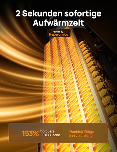 - 𝙇𝙚𝙞𝙨𝙩𝙪𝙣𝙜𝙨𝙨𝙩𝙖𝙧𝙠𝙚 𝙪𝙣𝙙 𝙜𝙧𝙤ß𝙛𝙡ä𝙘𝙝𝙞𝙜𝙚 𝙒ä𝙧𝙢𝙚: Erleben Sie sofortige und effiziente Wärme mit dem 76 cm hohen Keramikheizer von Dreo. Ausgestattet mit einem 308 mm großen PTC-Heizelement, dem verbesserten Hyperamics 2000W PTC-Thermodesign und individuell einstellbarer Oszillation (30°–60°–90°–120°), sorgt dieses Gerät für behagliche Wärme in großen Räumen bis zu 25 m².
