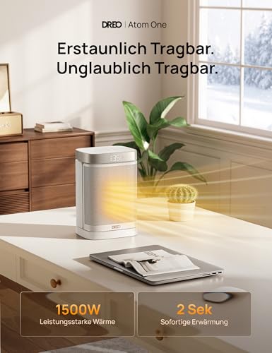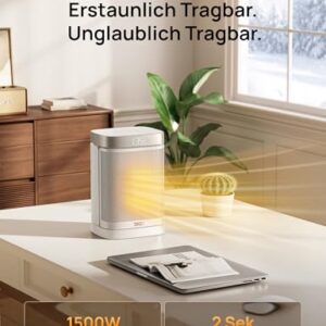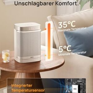 - 𝙎𝙘𝙝𝙣𝙚𝙡𝙡𝙚𝙨 𝘼𝙪𝙛𝙝𝙚𝙞𝙯𝙚𝙣– 1500 W PTC-Keramikheizung mit DC-Motor und 9 Lüfterflügeln erwärmt schneller als herkömmliche AC-Motor-Heizlüfter. Elektronischer Thermostat (3–35 °C) und LED-Display für präzise Temperaturregelung