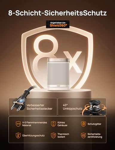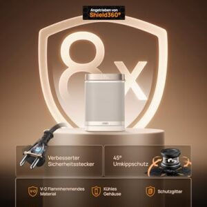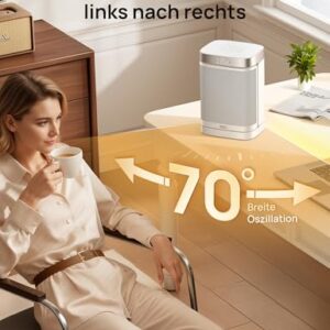 - 70°𝙗𝙧𝙚𝙞𝙩𝙚 𝙊𝙨𝙯𝙞𝙡𝙡𝙖𝙩𝙞𝙤𝙣– Exklusives Trackball-System verteilt die Wärme leise (nur 40 dB) und gleichmäßig im Raum. Mit 1–12 h Timer und automatischer Display-Abschaltung für ungestörten Schlaf