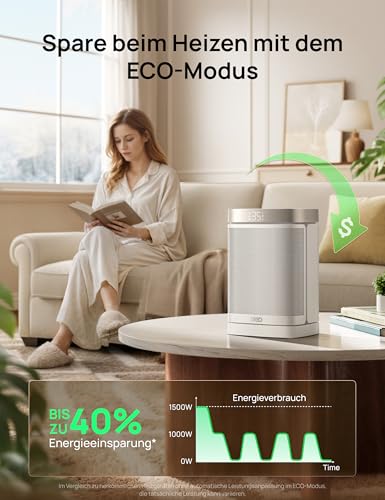 - 𝙀𝙣𝙚𝙧𝙜𝙞𝙚𝙨𝙥𝙖𝙧𝙚𝙣𝙙𝙚𝙧 𝙀𝘾𝙊-𝙈𝙤𝙙𝙪𝙨– 4 Heizmodi (High, Low, ECO, Ventilator) für individuellen Komfort. Der ECO-Modus passt die Leistung automatisch an die Raumtemperatur an, hält Sie warm und senkt gleichzeitig die Heizkosten