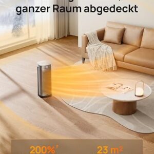 - 𝐒𝐜𝐡𝐧𝐞𝐥𝐥𝐞 𝐖ä𝐫𝐦𝐞 𝐟ü𝐫 𝐬𝐨𝐟𝐨𝐫𝐭𝐢𝐠𝐞𝐧 𝐊𝐨𝐦𝐟𝐨𝐫𝐭: Mit 2000W PTC-Keramikheizung und Hyperamics-Technologie bietet dieser tragbare Heizlüfter schnelle und angenehme Wärme in Sekunden. Er verwandelt kalte Räume in gemütliche Bereiche mit einer Heizgeschwindigkeit von 3,54 m/s und deckt bis zu 23,2 m² ab