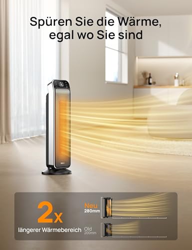 - Die ultimative Heiz-Erfahrung: Der verbesserte 25-Zoll-Keramikraumheizer von Dreo bringt mit seinem neuen hyperamischen Wärmedesign eine schnelle Wärme von 11,5 Fuß/Sekunde, während der erweiterte Impeller die Heizreichweite verdoppelt und ihn zum idealen Heizstrahler für große Räume und mildere Winter macht.